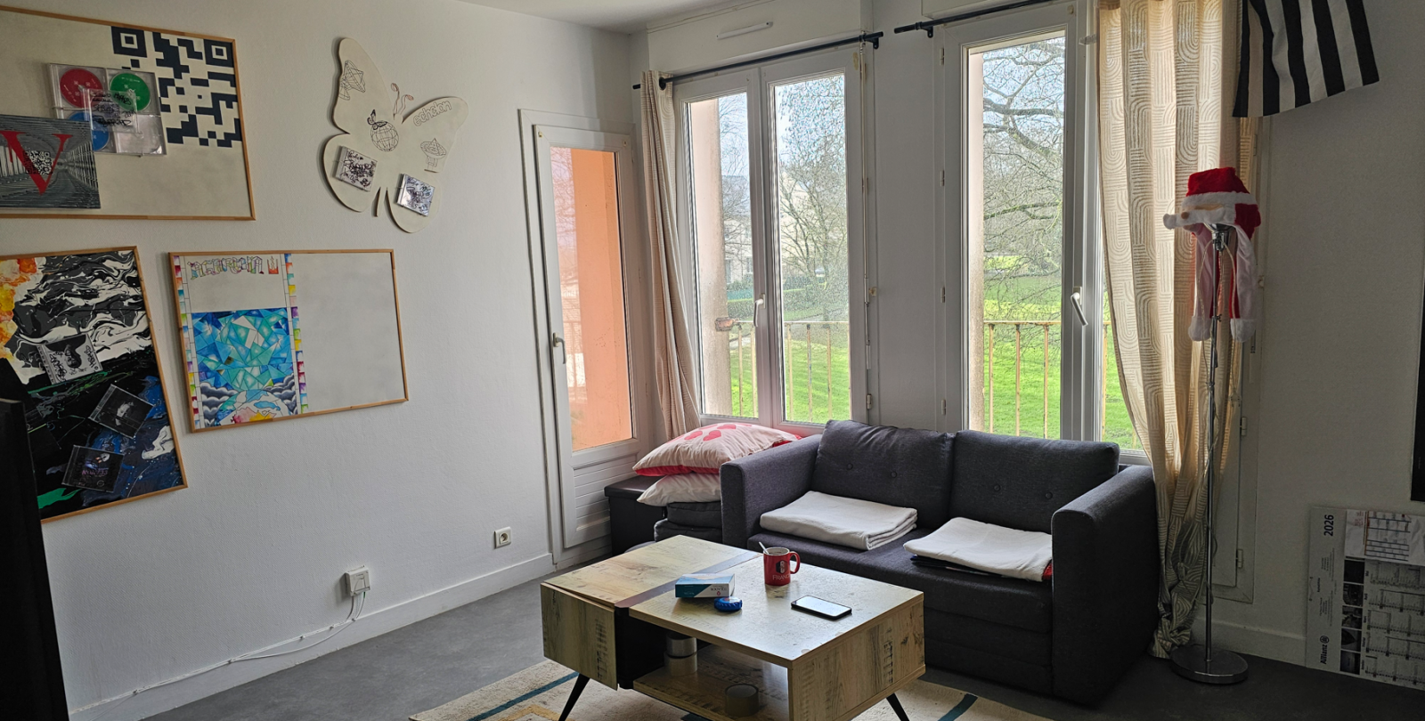 Vaste séjour de 26 m², balcon abrité, 2 belles chambres avec placard, possibilité 3.