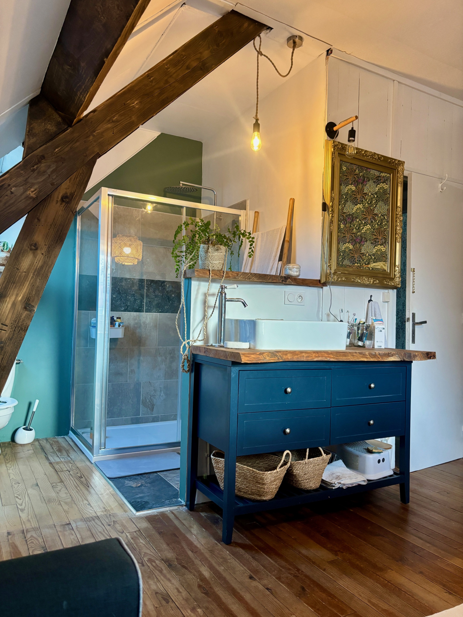 Vous découvrez une suite parentale confortable comprenant une salle d’eau moderne et un dressing intégré : un véritable espace intimiste et pratique.