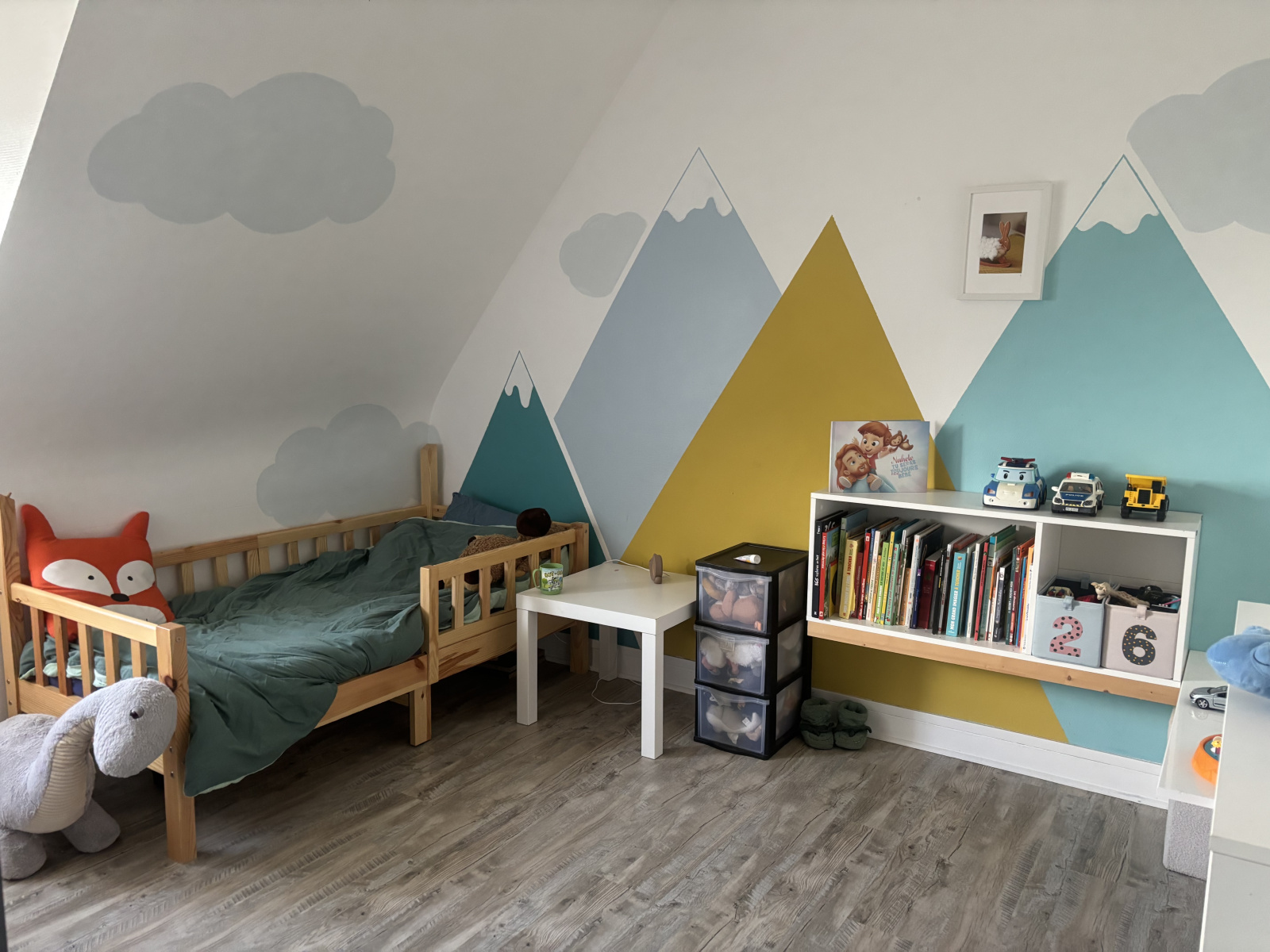 A l'étage : 3 chambres, coin bureau, salle de bains, WC.
