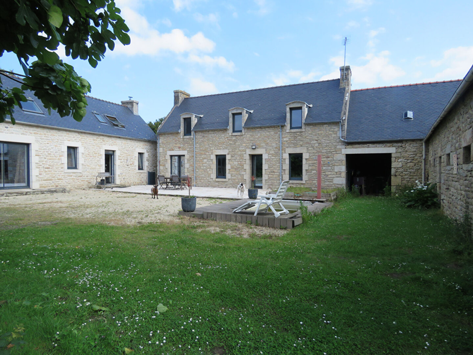 PLOBANNALEC-LESCONIL - Au calme, sur un terrain de 2 Ha environ, corps de ferme en partie rénovée avec dépendances et hangar. L'ensemble se compose comme suit : - La longère rénovée propose au RDC cuisine équipée aménagée, un salon séjour et à l'étage 3 chambres, WC et salle de bains. - Une seconde maison en pierre à rénover de 150 m² (possibilité 3/4 chambres) - Deux dépendances en pierre de 63 et 82 m² au sol. - Un hangar de 625 m². Beau terrain boisé de 2 Ha environ. AGENCE DE L'ODET PONT-L'ABBE - 02.30.14.00.40